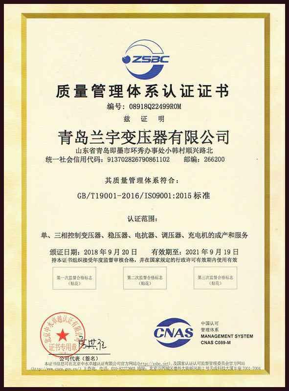 公司在注重产品开发,研制的同时,不断加强质量管理,并全面通过了CE认证、CQC认证及ISO9001国际质量体系认证。