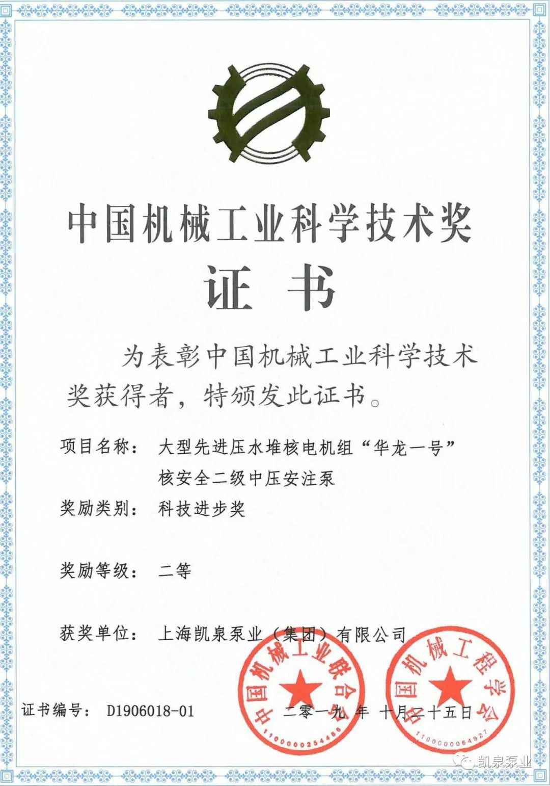 近日,永利手机在线登入-永利(中国)与中广核工程有限公司联合研制的《大型先进压水堆核电机组“华龙一号”核安全二级中压安注泵》项目荣获中国机械工业科学技术奖——科技进步奖二等奖。大型先进压水堆核电机组“华龙一号”核安全二级中压安注泵国产化研制的成功,对发展民族工业能力,对增强我国核能装备的竞争能力都起到了一定的积极作用。另外,研制过程中一些关键技术的解决,如Q-H曲线陡降的设计方法,多工况点低比速高效和汽蚀性能优